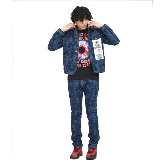 This dark blue type 3 denim jacket is crafted from a premium 27 cube laser detail throughout the whole jacket. It features the cult signature selvage trim details.