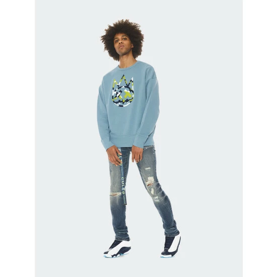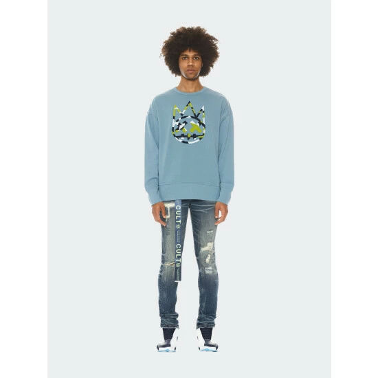 An essential wardrobe staple, this blue heaven sweatshirt is built from a heavy french terry with a contrast printed Cult logo on the front.