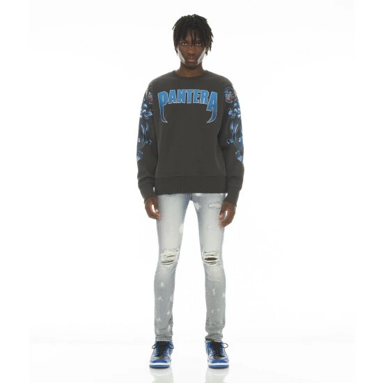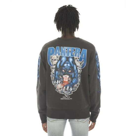 An essential wardrobe staple, this black sweatshirt is built from heavy french terry with printed pantera graphics all over.