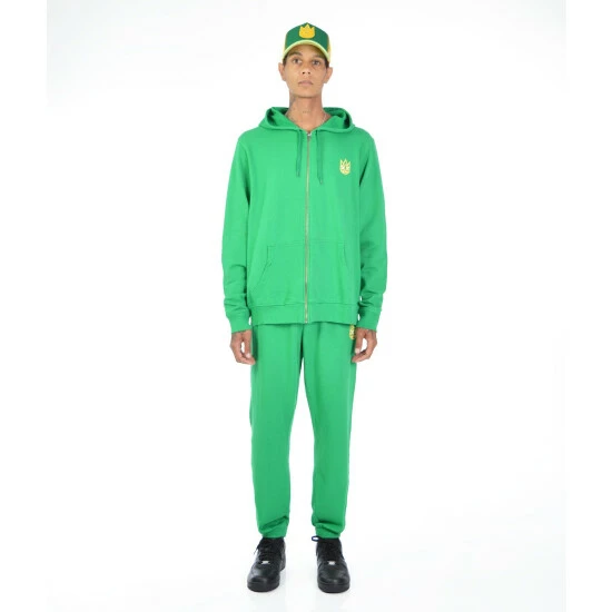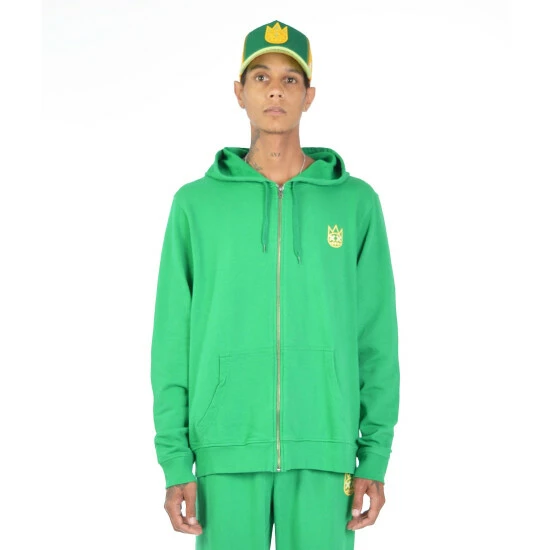 This kelly green lightweight french terry full-zip hoodie is the perfect throw-on for a cool relaxed look. Our “shimuchan” logo is printed on the front in a contrasting color.