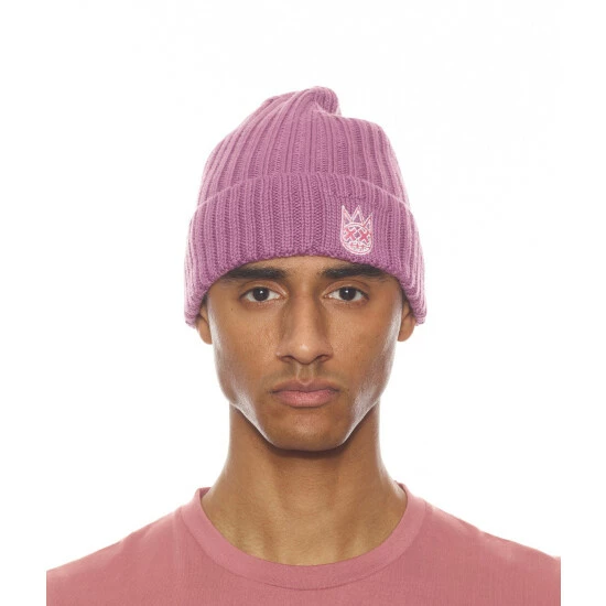 Deco rose knitted poly-wool blend hat adorned with an embroidered Shimuchan logo on the front. Designed with a thick fold-over cuff to keep you warm.
