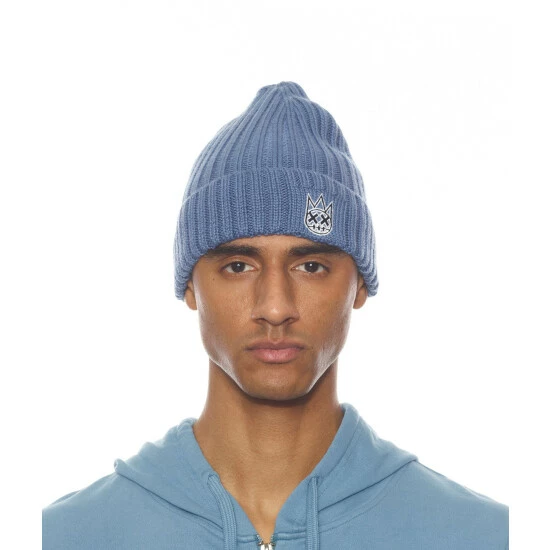 Blue heaven knitted poly-wool blend hat adorned with an embroidered Shimuchan logo on the front. Designed with a thick fold-over cuff to keep you warm.