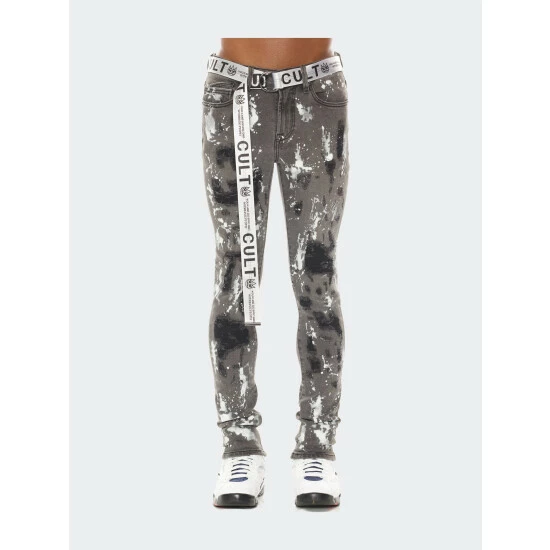 This Punk Super Skinny style in cinder has a narrow leg from thigh to ankle. Crafted from a premium stretch denim then vintage washed for a clean design.
