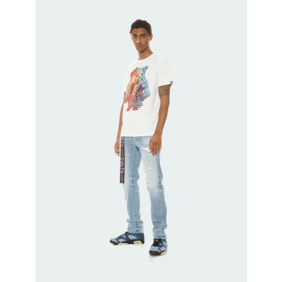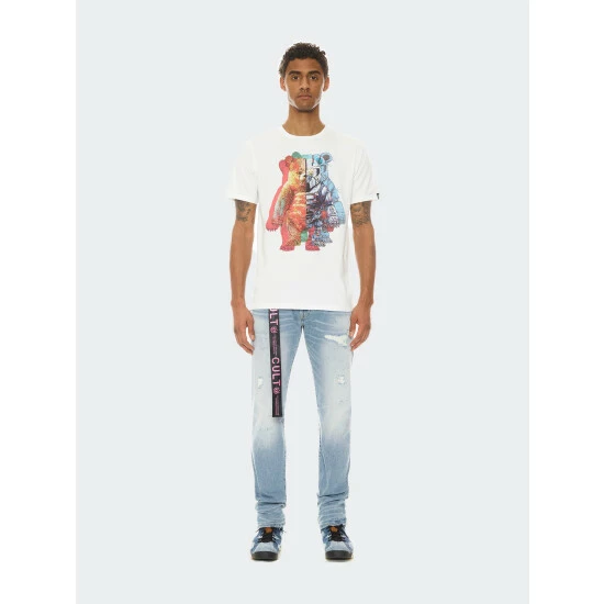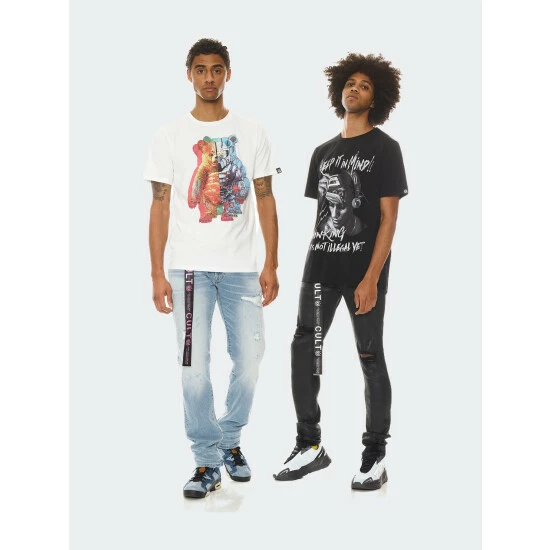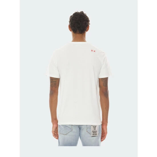 This white cotton tee features an digital print on the front and Cult signature “XX” printed on the back.
