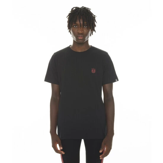 Cotton black logo t-shirt is adorned with a large Cult XX red snakeskin applique top applied on the back.