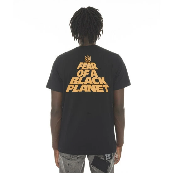 Cotton black logo t-shirt is adorned with a large Cult printed graphic on the front.