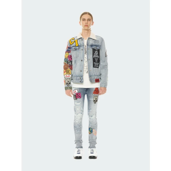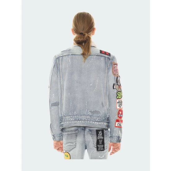 This denim jacket is crafted from a premium wash, the Cult signature selvedge trim and XX” embroidery on the back.