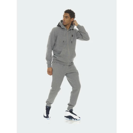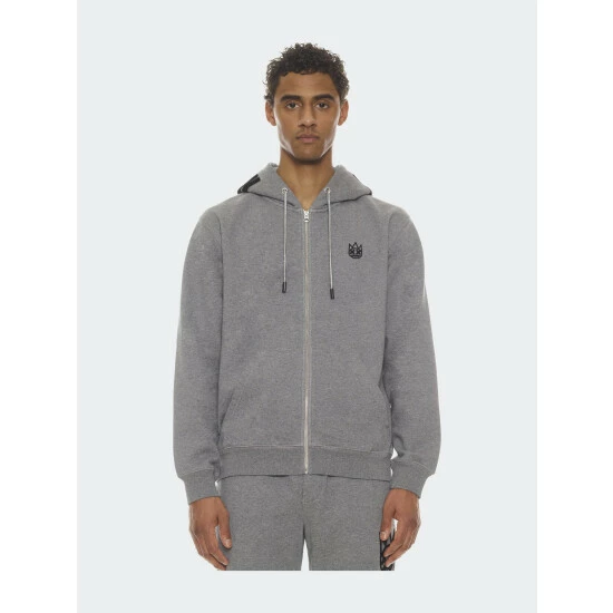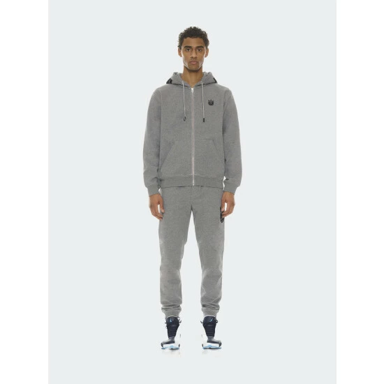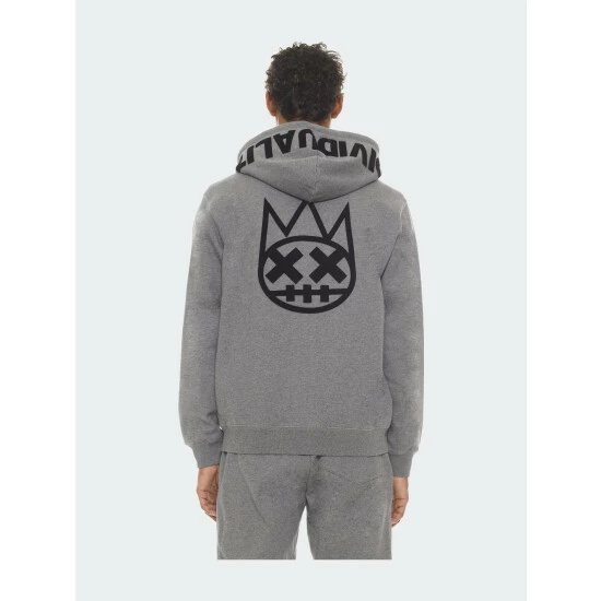 This heather grey full-zip hoodie is cut from heavyweight french terry. With a small raised felt logo applique on the front, an oversized raised felt applique on the back, and raised felt “Individuality” applique on the hood for an elevated look.